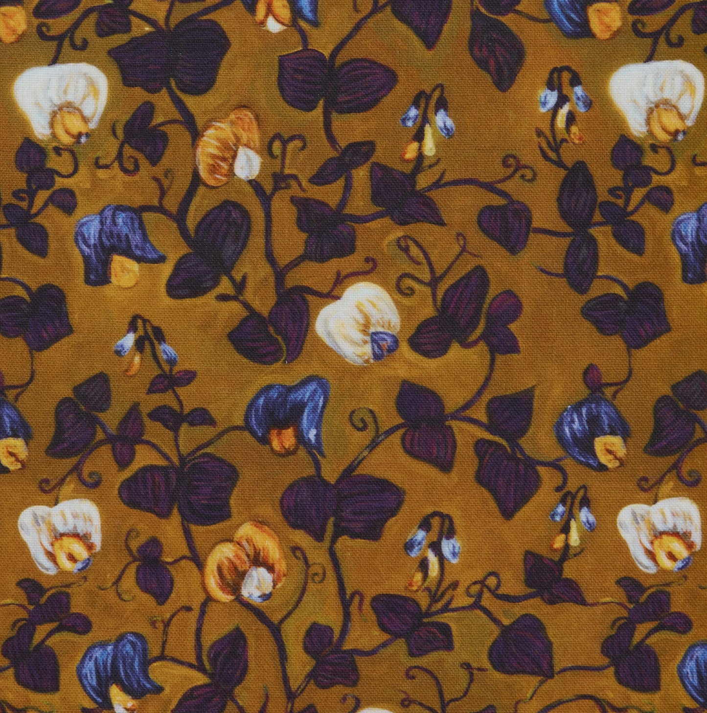 Our Sweet Pea Copper Fabric by the yard is printed with water-based pigment ink.